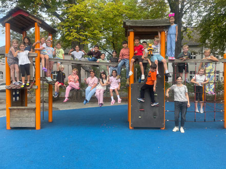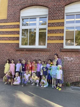 Das ist unser erstes Klassenfoto. Im August 2022 war unser erster Schultag in der Bienenklasse. Wir freuen uns darauf, das Lesen, Rechnen und Schreiben zu lernen.